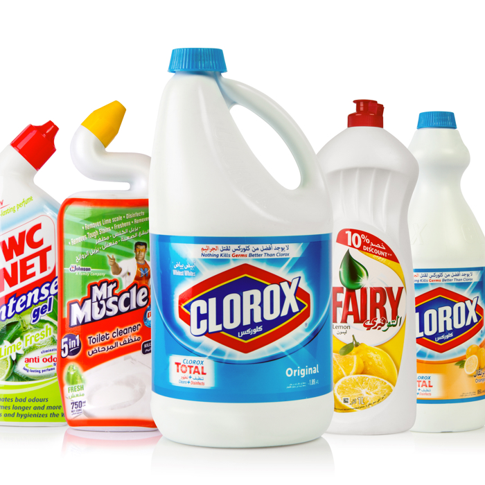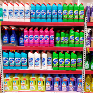 Household essentials such as all-purpose cleaners, air fresheners, and surface sprays.